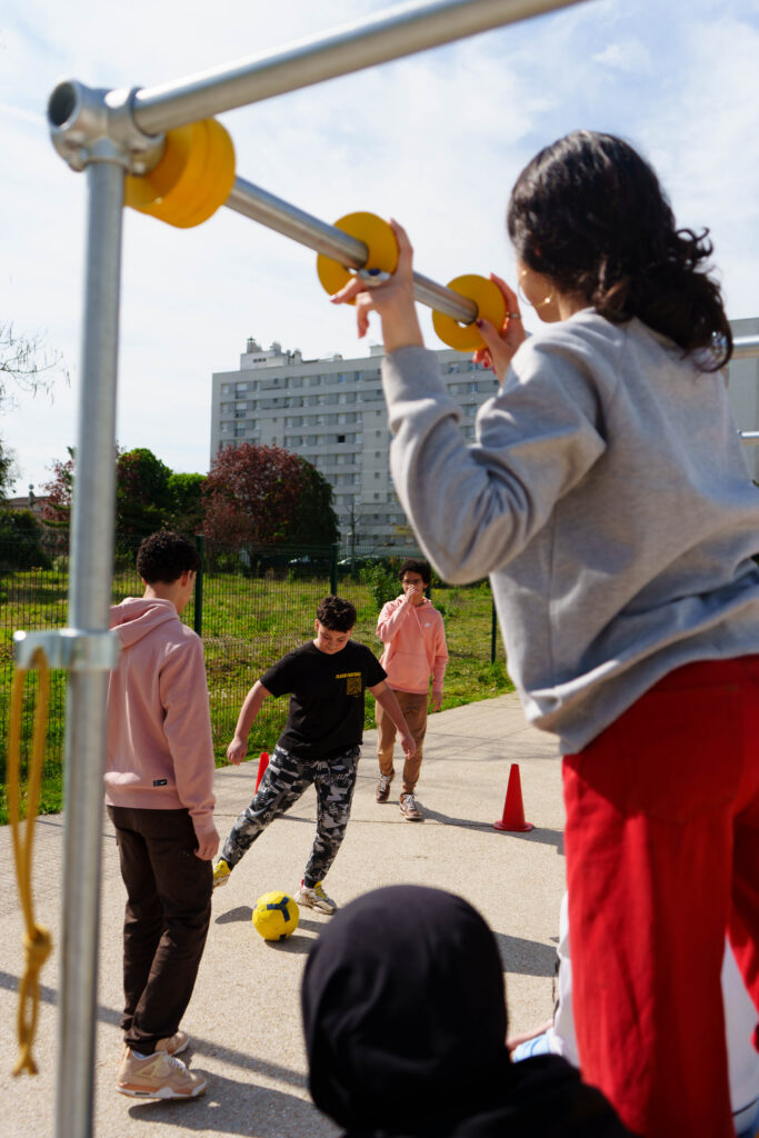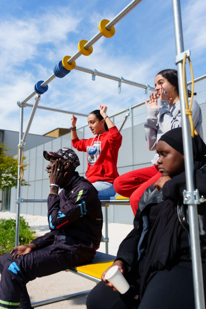 l’agence d’architecture Atelier + 1 a accompagné le collectif TEPOP et La maison Pour Tous Youri Gagarine dans la co-conception et la fabrication participative d’un kit mobile sportif : le YOURI KIT.